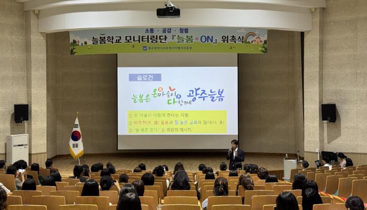 광주시교육청은 18일 광주시교육청시민협치진흥원 대강당에서 늘봄학교 모니터링단 ’늘봄*ON‘ 위촉식을 개최했다.