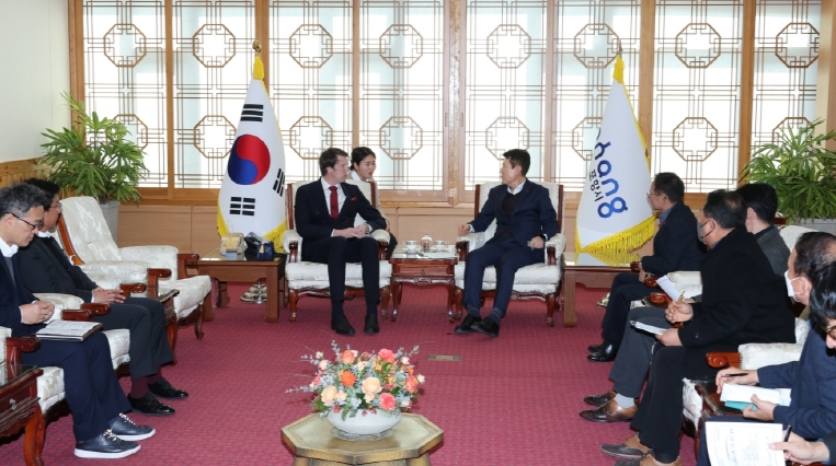 [무한뉴스=최진수 기자] 포항시는 15일 북극경제이사회(Arcticn Economic Council, ) 매즈 크비스트 프레데릭센 사무총장이 포항시청을 방문해 이강덕 포항시장 및 관련 부서 국·과장과 함께 지속가능한 북극권 협력방안을 논의했다고 밝혔다.