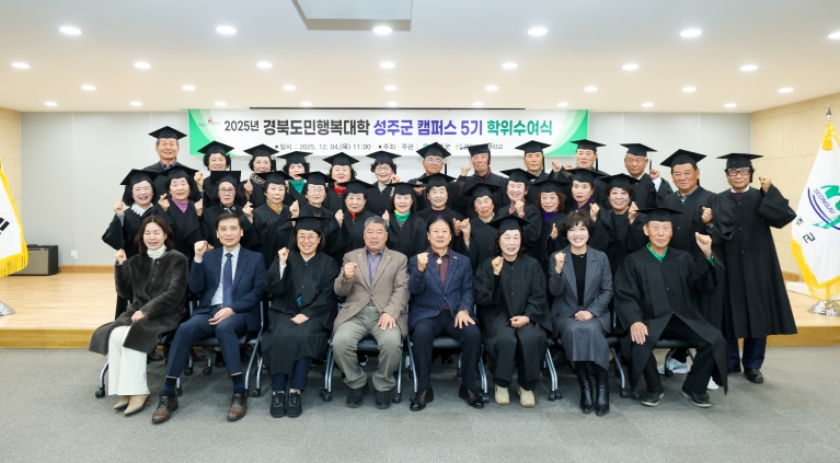 [무한뉴스=최진수 기자] 성주군 은 지난 12.4일 군청 문화강좌실에서 수료생과 관계자 등 45명이 참석한 가운데‘2025년 경북도민행복대학 성주캠퍼스 제5기 수료식’을 개최했다.