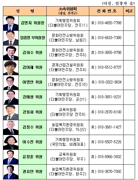 | ▲ 제12대 전북특별자치도의회 제4기 예산결산특별위원회 위원 명단 |