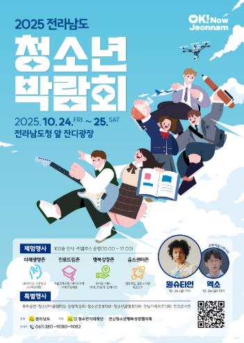 [무한뉴스=정민정 기자] 전라남도는 청소년이 행복한 전남 실현을 위해 도가 주최하고 (재)전남도청소년미래재단이 주관하는 ‘2025 전라남도 청소년박람회’를 24일부터 2일간 전남도청 앞 도민광장에서 개최한다.