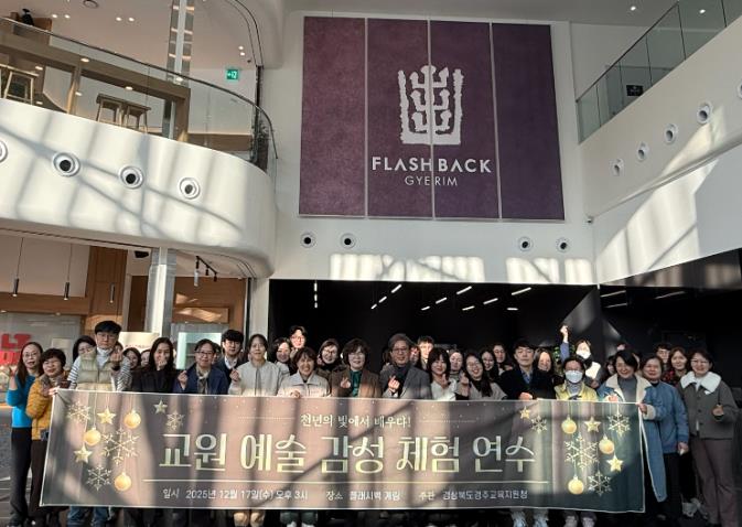 [무한뉴스=최진수 기자] 경상북도경주교육지원청은 2025년 12월 17일 오후 3시부터 관내 초·중·고등학교 예술교육 담당교사 50여 명을 대상으로 학교 예술교육 활성화를 위한 교원 예술 감성 체험 연수를 실시했다.