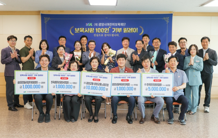 [무한뉴스=정민정 기자] (재)광양시어린이보육재단은 지난 6월 5일 광양시청 만남실에서 ‘보육사랑 100인+ 기부 릴레이’ 기탁식을 개최했다고 9일 밝혔다.