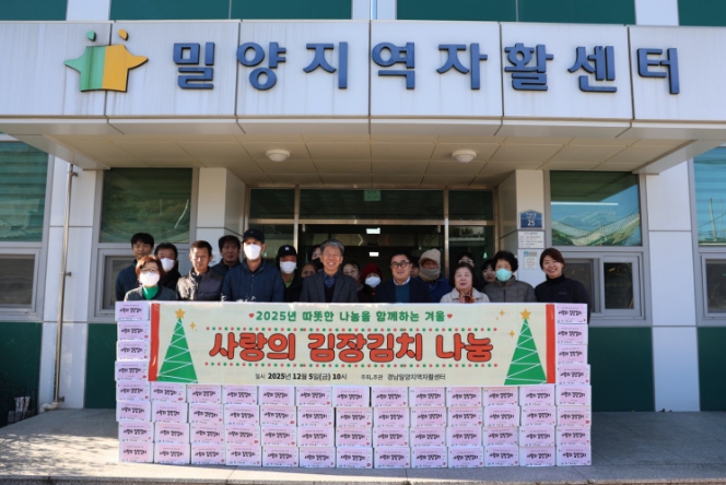 이번 나눔은 매년 연말 진행하는 밀양지역자활센터의 지역 공헌 프로그램으로, 센터 후원금으로 마련한 지역 농산물로 김치를 만들어 자활사업 참여자, 지역 주민, 경로당 등 총 140여 곳에 전달하며 지역사회에 온정을 나눴다.
