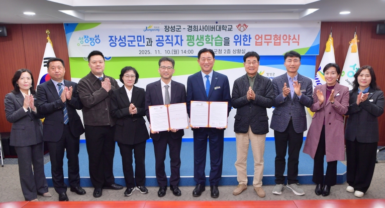김한종 장성군수는 “이번 협약이 군민 누구나 배우고 성장할 수 있는 평생학습도시 실현을 위한 중요한 전환점이 될 것”이라며 “배움이 곧 성장으로 이어지는 ‘성장장성’의 가치를 군민과 함께 만들어 가겠다”고 말했다.