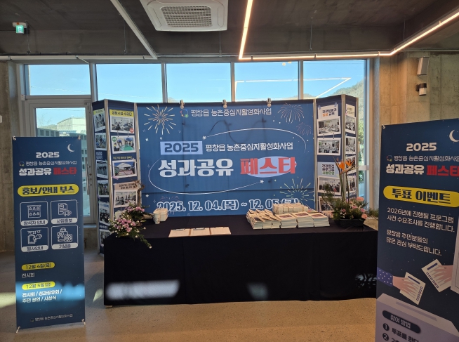 행사의 하이라이트인 성과공유회 페스타는 5일 오후 3시부터 5시 30분까지 진행된다. 이날 행사에는 심재국 평창군수를 비롯해 사업 관계자와 지역 주민 등 약 90명이 참석할 예정이며, 우수 활동 사례 발표와 참여 주민 격려 등 소통과 화합의 시간이 이어질 예정이다.