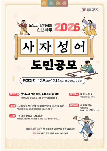 | ▲ 강원특별자치도, 2026 신년화두 사자성어 공모 진행 |