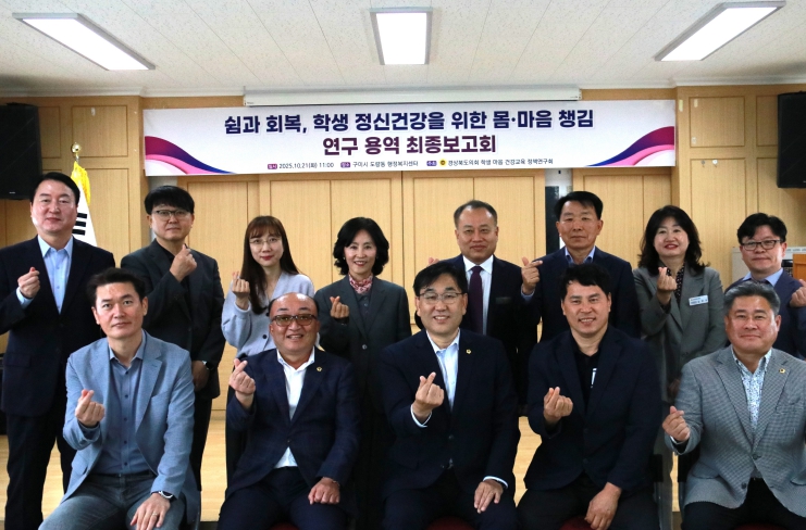 [무한뉴스=양현명 기자] 경북도의회 의원연구모임인'경상북도 학생 마음건강 교육 정책연구회'(대표 황두영 의원)는 10월 21일 구미시 도량동 행정복지센터에서 ‘쉼과 회복, 학생 정신건강을 위한 몸·마음 챙김 연구용역’ 최종보고회를 개최했다.