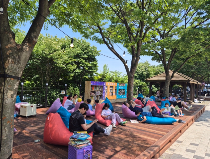 ‘어디든 서재’가 마련되어 텐트와 빈백, 서가와 도서가 어우러진 열린 독서 공간이 펼쳐졌고, 책을 어렵게 느끼던 시민들도 자연 속에서 편안하게 책을 마주하는 모습을 보였다. 시민들은 휴식하듯 책장을 넘기며 도서관 밖에서 책의 매력을 새롭게 경험했다.