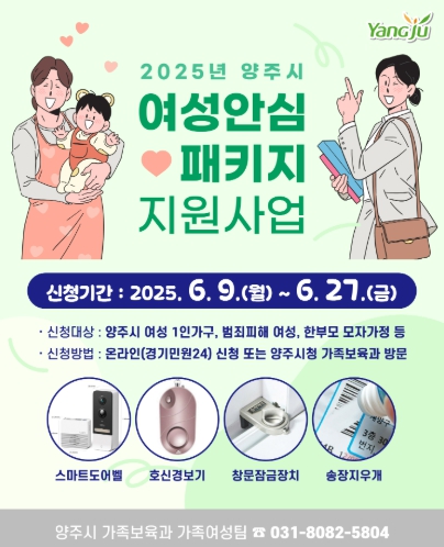 양주시, ‘여성안심 패키지 지원사업’ 6월 9일부터 27일까지 접수