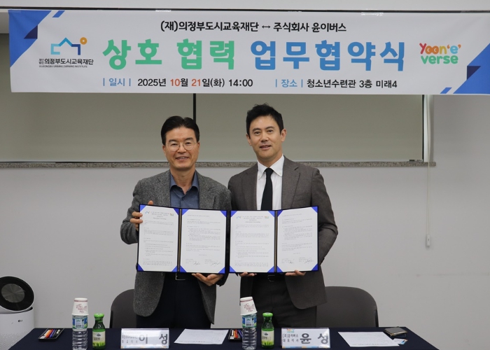 [무한뉴스=정승훈 기자] (재)의정부도시교육재단은 지난 10월 21일 ㈜윤이버스와 ‘AI 기반 영어학습 협력 기반 구축을 위한 업무협약’을 체결했다.