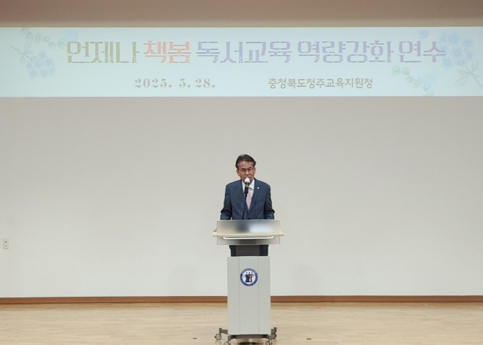 [무한뉴스=정민정 기자] 청주교육지원청에서 5월 28일 초·중등 교사 110여 명이 참여한 가운데‘선생님을 위한 독서 테라피와 인문고전 독서동아리 운영법’을 주제로 한 전문 연수가 열렸다. 이번 연수는 학생들의 마음 근육 강화와 인문학적 성찰을 지원할 수 있는‘언제나 책봄’독서 지도의 실제를 지원하고자 마련됐다.
