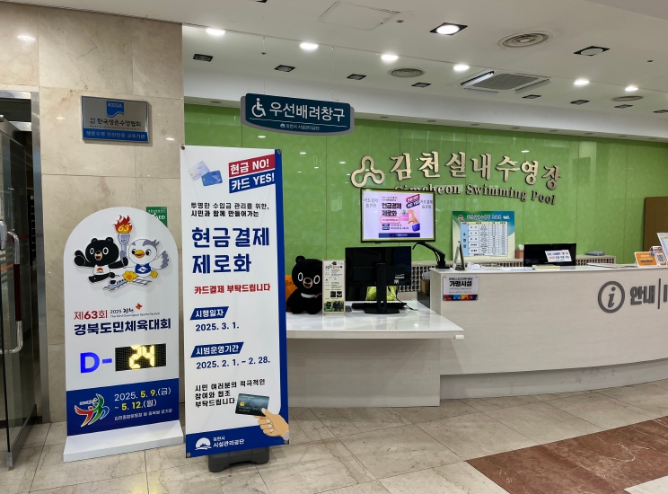 [무한뉴스=최진수 기자] 김천시시설관리공단은 종합스포츠타운 현금수납 제로화 도입 성공 및 제도 정착으로 공단 전체시설 현금수납 제로화를 달성했다고 밝혔다.