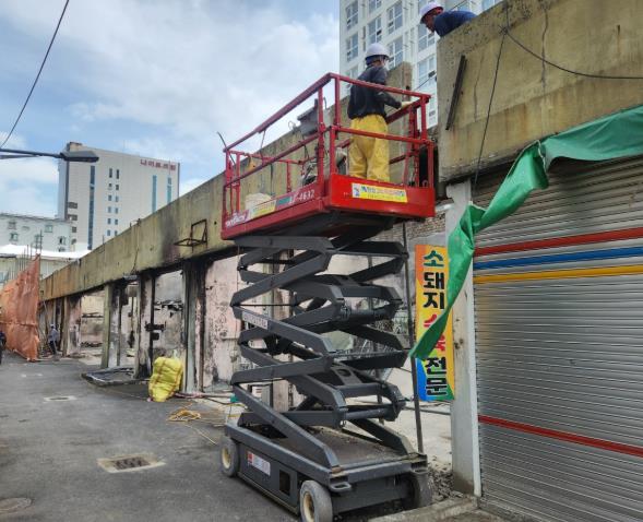 현재 고소작업대 등 장비가 투입되어 현장 작업이 진행 중이다.