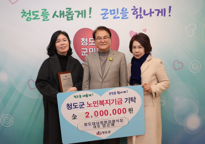 김하수 청도군수는 “지속적인 기탁과 관심으로 노인복지기금에 힘을 보태주신 데 깊이 감사드린다”며 “군민 여러분의 따뜻한 참여가 어르신들의 복지 향상에 큰 밑거름이 되는 만큼, 앞으로도 더 많은 어르신들에게 실질적인 도움이 될 수 있도록 최선을 다하겠다”고 밝혔다.