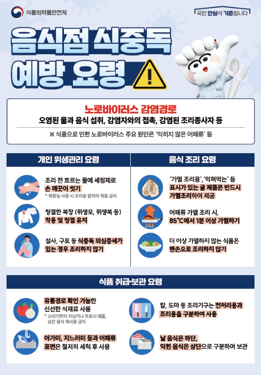 이번 활동은 음식점 등 식품접객업소를 대상으로 추진되며, 특히 겨울철부터 이듬해 봄철까지 유행하는 노로바이러스 식중독 예방에 집중한다.