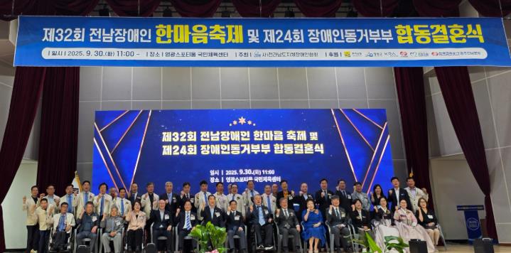 [무한뉴스=정민정 기자] 전라남도는 지난 9월 30일 영광스포티움국민체육센터에서 제32회 전남장애인한마음축제와 제24회 장애인동거부부 합동결혼식을 성황리에 개최했다고 밝혔다.