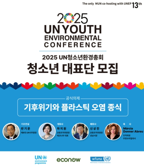 [무한뉴스=양현명 기자] 성남시청소년청년재단 판교유스센터와 환경단체 에코나우는 오는 11월 15일부터 16일까지 이틀간 성남 국립국제교육원에서 열리는 ‘2025 UN청소년환경총회’에 참가할 국내외 청소년 대표단 300명을 10월 13일까지 모집한다. 이번 총회는 성남시청소년청년재단 판교유스센터와 환경단체 에코나우가 공동 주관하며, 반기문 전 UN사무총장과 브라질 대사 등 주요 인사가 참석한다.