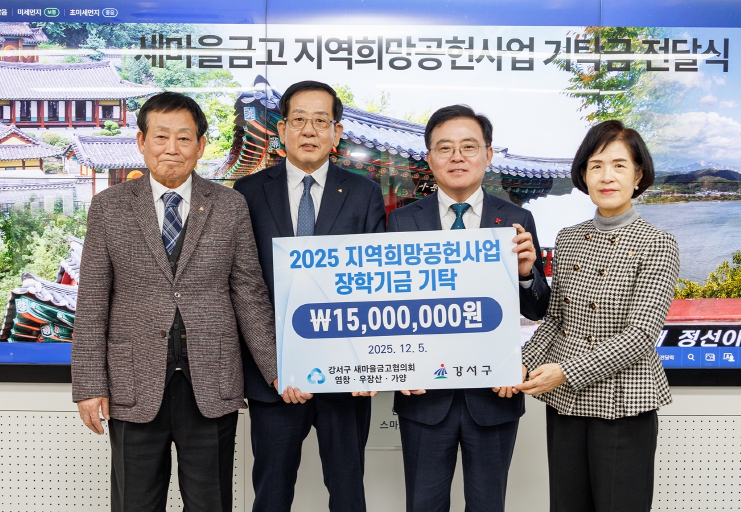 새마을금고는 지난 2011년부터 한 해도 빠지지 않고 장학기금 지원, 작은도서관 시설 개선, 강서둘레길 조성 등 다양한 사회공헌사업을 펼쳐왔다. 지난 15년간 누적된 기탁금액은 총 3억 원이다.
