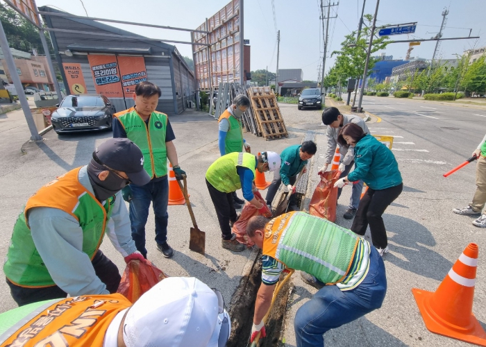 또한, 별내동 자율방재단과 협조해 우기 전 낙엽, 쓰레기 등으로 막혀있는 도로변 배수로 정비를 실시했다.