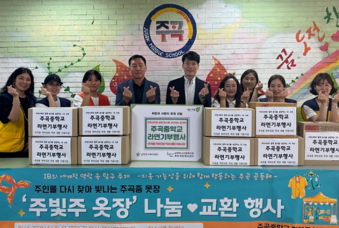 [무한뉴스=정승훈 기자] 남양주시는 지난 13일, 주곡중학교 학부모회가 자원 재활용 행사 ‘주빛주 옷장’을 통해 마련한 라면 10박스를 북부희망케어센터에 전달했다고 밝혔다.