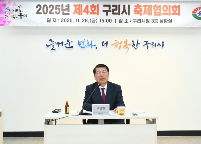 [무한뉴스=정승훈 기자] 구리시는 11월 28일 오후 3시 구리시청 상황실에서 ‘2025 제4회 구리시 축제협의회’를 개최하고, 지난 9월 26일부터 28일까지 열린 2025 구리 코스모스 축제 추진 결과와 향후 개선 과제를 공유했다. 아울러 2025 구리 빛 축제 중간 보고회도 함께 진행했다.