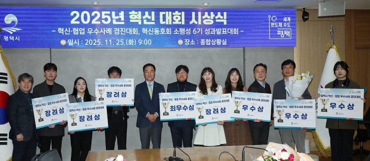 [무한뉴스=정승훈 기자] 평택시는 25일 시청 종합상황실에서 ‘2025년 평택시 혁신·협업 우수사례 경진대회’ 시상식을 진행했다고 밝혔다.