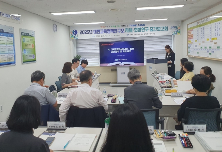 [무한뉴스=정민정 기자] 대전교육과학연구원 대전교육정책연구소는 5월 21일부터 23일까지 3일 동안 대전교육과학연구원 정책연구협의회실에서 2025년 자체연구 및 현장연구 중간보고회를 진행했다고 밝혔다.