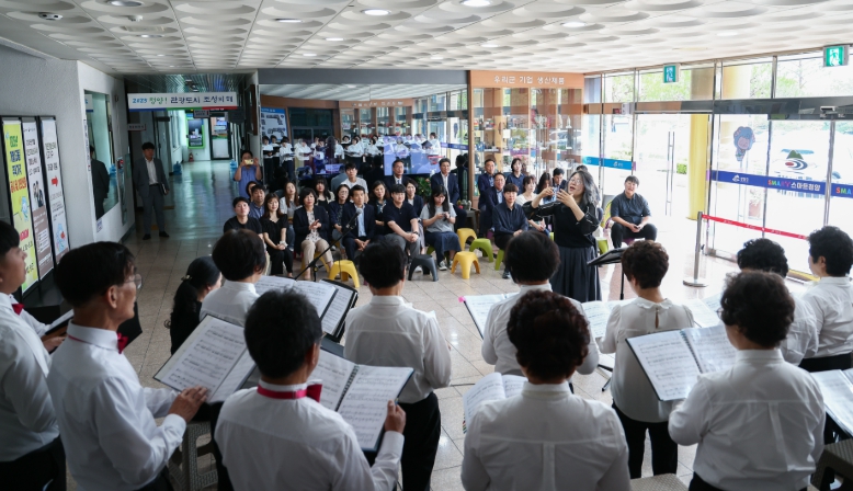 [무한뉴스=정민정 기자] 청양군립합창단이 28일 정오부터 1시간 동안 청양군청 1층 로비에서 봄맞이 버스킹 공연을 펼쳐 군청을 방문은 군민들과 공직자들에게 봄의 정취와 함께 깊은 감동을 선사했다.