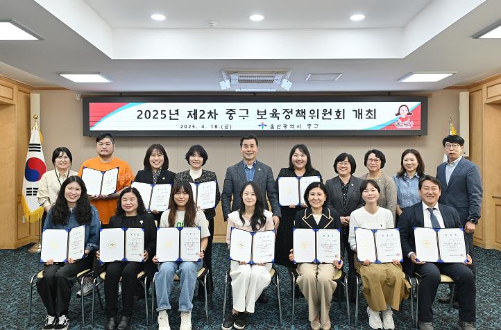 [무한뉴스=최진수 기자] 울산 중구가 4월 18일 오후 2시 중구청 중회의실에서 2025년 제2차 보육정책위원회를 개최했다.