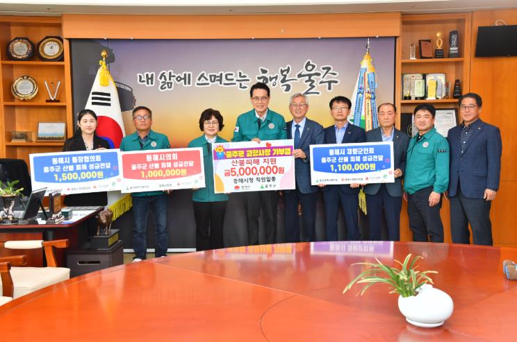 민귀희 동해시의회 의장은 “산불 피해를 입은 울주군 주민과 공무원들의 상황이 남 일 같지 않아 동해시의회와 통장협의회, 재향군인회가 함께 마음을 모아 성금을 준비했다”며 “하루빨리 피해 복구가 이루어지고 주민들의 삶이 일상으로 돌아갈 수 있길 바란다”고 밝혔다.