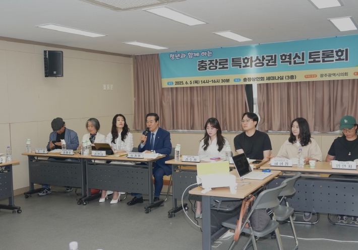 [무한뉴스=정민정 기자] 광주광역시의회 홍기월 의원(더불어민주당, 동구1)은 5일 동구 충장로상인회 회의실에서 ‘청년과 함께하는 충장로 특화상권 혁신 방안’ 정책토론회를 개최했다.