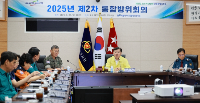 이날 회의에는 김광석 35사단장, 김철문 전북경찰청장, 김성준 전북지방병무청장을 비롯해 전북자치도 통합방위협의회 위원 및 관계자 30여 명이 참석, 도민의 생명과 재산을 지키기 위한 민·관·군·경·소방 간 통합방위태세를 점검했다.