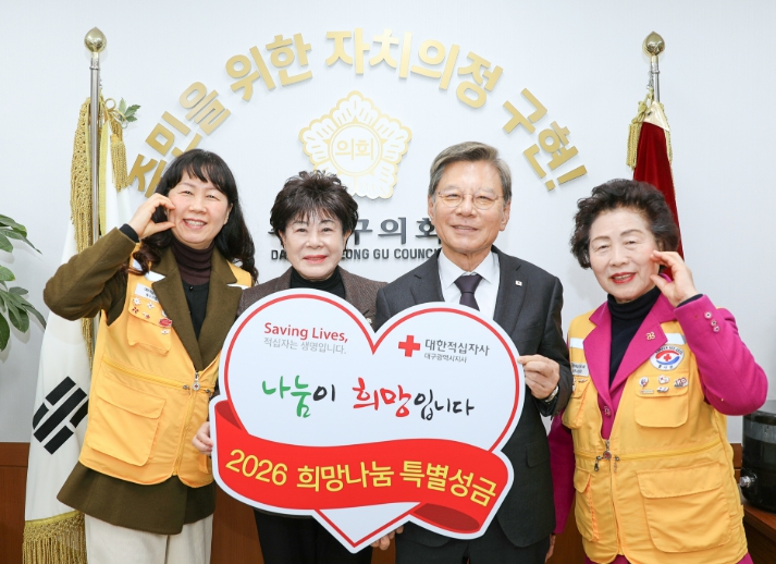 [무한뉴스=최진수 기자] 대구 수성구의회는 13일 대한적십자사 대구지사에 ‘2026 희망나눔 특별성금’ 100만원을 전달했다.