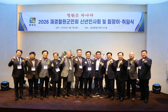 [무한뉴스=정민정 기자] 철원군은 2월 7일 오후 6시 서울 삼정호텔에서 열린 '2026년 재경철원군민회 이취임식 및 신년인사회'에 참석해 재경철원군민회의 새 출발을 축하하고, 철원군과 수도권 향우 간 상생 협력 강화 의지를 밝혔다.