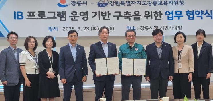 [무한뉴스=정민정 기자] 강릉교육지원청은 23일 오전 10시, 강릉시청에서 강릉시와 국제 바칼로레아(IB) 교육 프로그램 도입 및 운영을 위한 업무 협약을 체결했다.