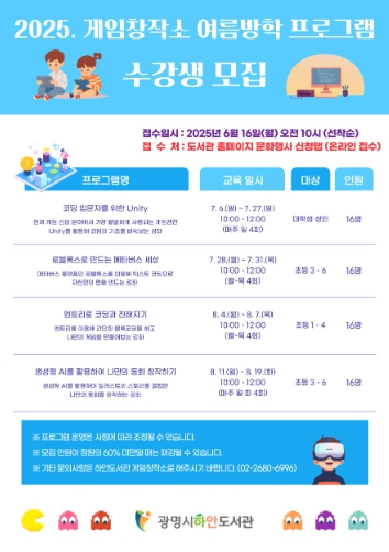 | ▲ 광명시 하안도서관, ‘2025 게임창작소 여름방학 프로그램’수강생 모집 |