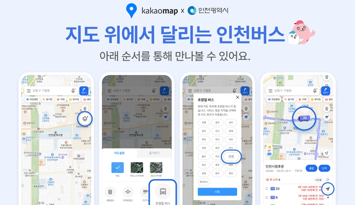 [무한뉴스=정승훈 기자] 인천광역시는 오는 9월 30일부터 카카오맵을 통해 실시간(초정밀) 버스 위치 서비스를 제공한다고 밝혔다.