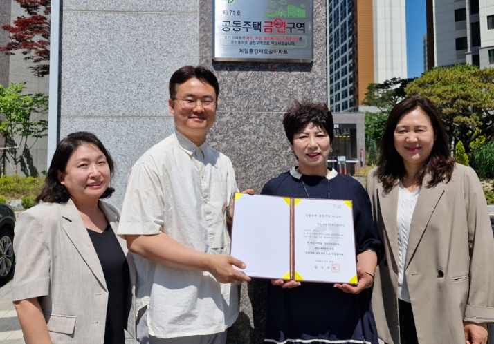 [무한뉴스=정민정 기자] 청주시 흥덕보건소는 11일 청주시 제71호 공동주택 금연구역(금연아파트)으로 지정된 제일풍경채오송아파트에서 현판식을 개최했다.