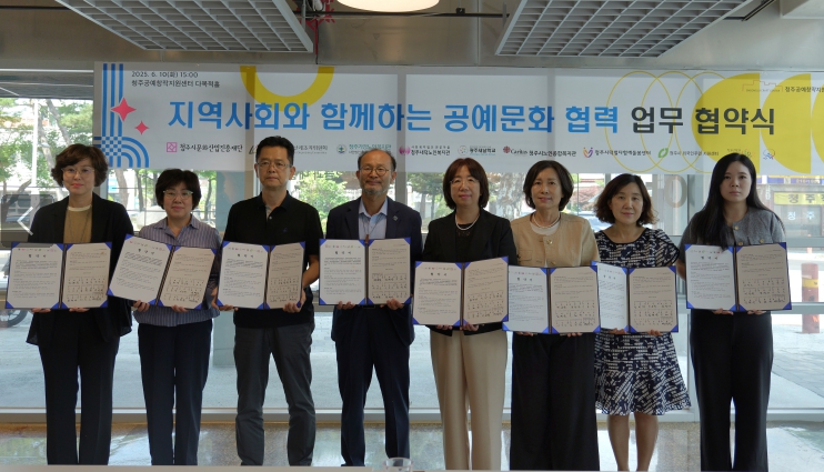 [무한뉴스=정민정 기자] 청주시와 청주시문화산업진흥재단이 운영하는 청주공예창작지원센터, 그리고 청주공예비엔날레조직위원회(이하 비엔날레)는 지난 10일 지역 관계기관 8곳과 공예문화를 공통분모로 다자간 업무협약을 체결했다.