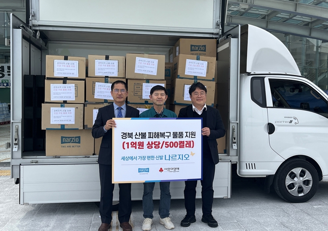 프리미엄 워킹화 브랜드 ‘나르지오’는 산불피해 이재민을 위해 신발 500켤레(1억 원 상당)를 안동시에 전달했다. 실용성과 품질을 겸비한 나르지오의 신발은 주민들의 일상 회복과 이동 편의에 실질적인 도움이 될 것으로 기대된다.