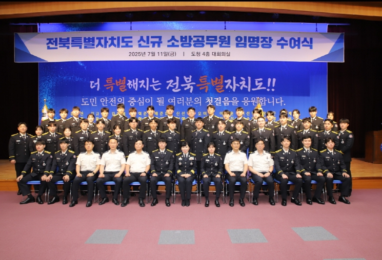 [무한뉴스=정민정 기자] 전북특별자치도소방본부는 지난 7월 11일, 도청 대회의실에서 신규 소방공무원 44명에게 임용장을 수여하며 새내기 소방관들의 힘찬 출발을 응원했다.