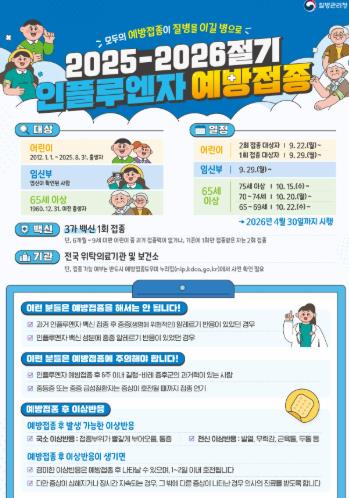 무료 접종 대상은 6개월~13세 어린이, 임신부, 65세 이상 어르신이다.