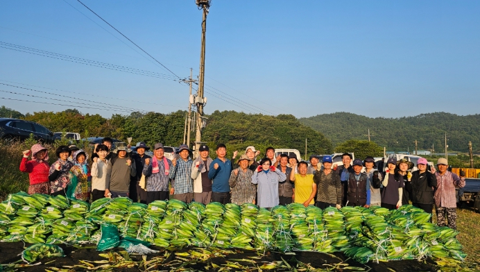 지난 7월 9일 수확 작업에는 새벽부터 회원 및 면 직원들이 참여해 구슬땀을 흘리며 옥수수 5,000개를 수확했다. 수확한 옥수수는 선별 작업을 거쳐 7월 9일부터 10일까지 관내 거점경로당 3개소와 취약계층에 전달됐다.