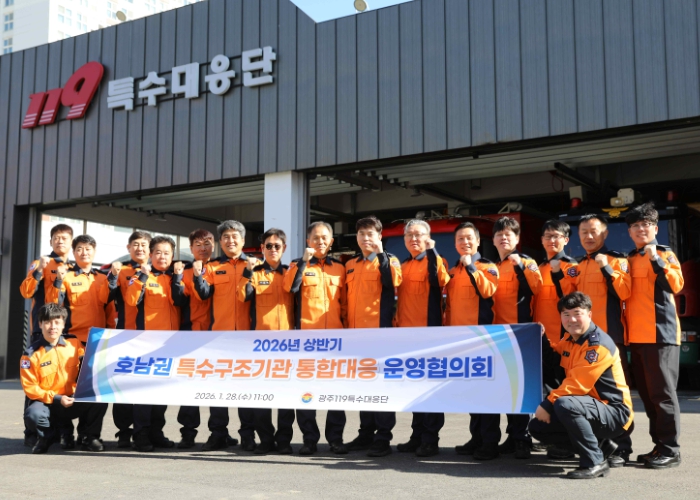 [무한뉴스=정민정 기자] 광주광역시 119특수대응단은 28일 대응단 작전실에서 ‘2026년 상반기 호남권 특수구조기관 통합대응 운영협의회’를 개최했다.