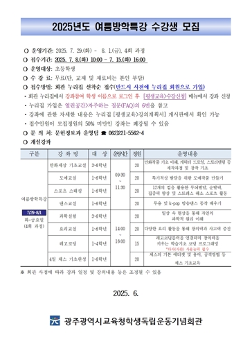 | ▲ 광주시교육청학생독립운동기념회관, 여름방학 특강 운영 모집 안내문 |