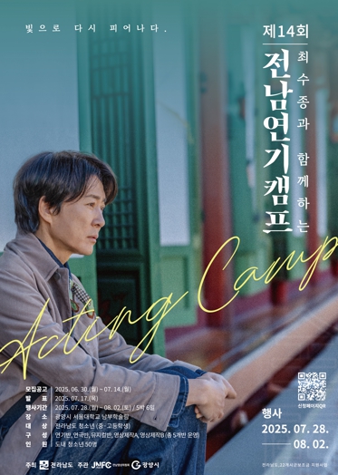 [무한뉴스=정민정 기자] 전라남도와 (사)전남영상위원회가 ‘제14회 최수종과 함께하는 전남연기캠프’ 참가 학생 50명을 14일까지 모집한다.