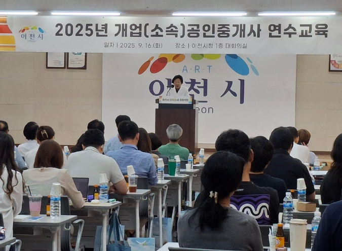 [무한뉴스=정충근 기자] 이천시는 지난 9월 16일 이천시청 1층 대회의실에서 관내 개업(소속) 공인중개사 130여 명을 대상으로 ‘2025년 공인중개사 연수 교육’을 실시했다.
