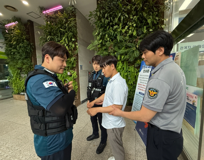 이번 훈련은 민원인의 폭언·폭행 등 위법한 행위로 인한 비상상황에 대비해 민원공무원을 보호하고 직원들의 현장 대응능력 향상을 위해 실제 상황을 가정해 이뤄졌다.