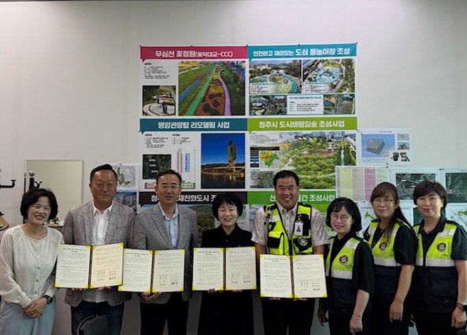협약식에는 풍연숙 공원산림본부장, 한효동 청주시응급구조지원민방위대 대장, 정성채 (주)이플랜 대표, 박용준 주성아트플랜(주) 대표가 참석했다.